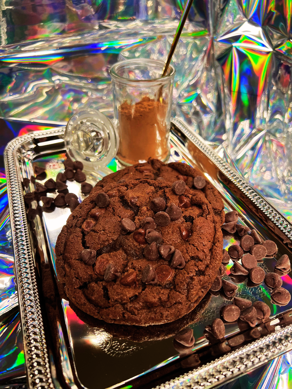 Rich chocolate cookie mixed with semi and dark chocolate chips.